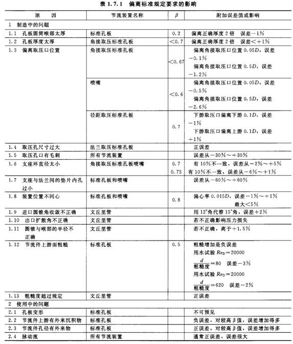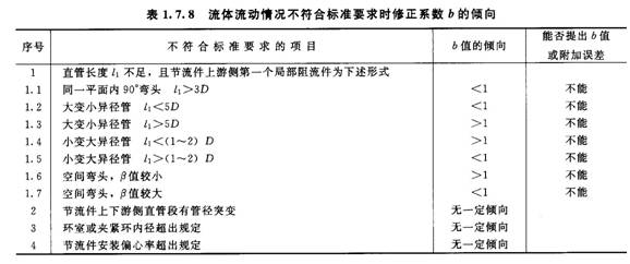 節流裝置結構不符合標準要求對流出系數影響的傾向如表1.7.4所示。