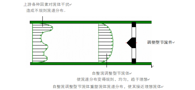 安為制造(美國(guó))公司(Iamway Manufacture Co.)經(jīng)過長(zhǎng)期試驗(yàn)、應(yīng)用和數(shù)據(jù)積累,自主研發(fā)的調(diào)整型流量計(jì)(Conditioning Flowmeter),是一種新型的差壓式流量計(jì),它繼承了傳統(tǒng)差壓流量計(jì)結(jié)構(gòu)簡(jiǎn)單、安全可靠、便于檢修維護(hù)的優(yōu)點(diǎn),在流體力學(xué)原理的基礎(chǔ)上,獨(dú)特研發(fā)了自整流結(jié)構(gòu)設(shè)計(jì)和節(jié)流孔的微積分學(xué)和統(tǒng)計(jì)學(xué)四孔等效均勻?qū)ΨQ分布,這種雙重作用,即調(diào)整型節(jié)流體,可以使流體在接近調(diào)整型節(jié)流體時(shí),調(diào)整型節(jié)流體自身即能將流體的流速曲線調(diào)整到適合測(cè)量的理想狀態(tài) (Put it into a proper state for use),使其滿足流量計(jì)算伯努利方程對(duì)流體的要求,同時(shí)流體通過調(diào)整型節(jié)流體后可以將渦流調(diào)整到最小,產(chǎn)生高頻低幅信號(hào),使輸出的信號(hào)精確而穩(wěn)定。這一新型自整流調(diào)整型節(jié)流裝置,可以對(duì)上游流體的流速分布曲線重新整流,這一節(jié)流方式的變化,帶來了差壓式流量測(cè)量技術(shù)的一場(chǎng)革命性的創(chuàng)新突破和應(yīng)用。