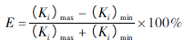 式中:Kij為第i檢定點第j次檢定時的系數,L-1;Nij為第i檢定點第j次檢定時的流量計顯示儀表測得的脈沖數;Vij為第i檢定點第j次檢定時標準裝置測得的實際體積,L;β為檢定用液體在檢定狀態下的體膨脹系數;(θs)ij、(θm)ij分別為第i檢定點第j次檢定時標準裝置和流量處的液體溫度,℃;κ為檢定用液體在檢定狀態下的壓縮系數;(ps)ij、(pm)ij分別第i檢定點第j次檢定時標準裝置和流量處的液體表壓力,Pa;n為每點檢定次數;(Ki)max為流量計在流量檢定點得到的Ki中的最大值;(Ki)min為流量計在流量檢定點得到的Ki中的最小值。