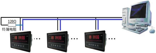 通訊線請使用屏蔽雙絞線,波特率為19200bps以上時,通訊線長度不能超過1000米。在通訊線長度大于100米的條件下進(jìn)行通訊時,為減小反射和回波,必須增加阻值為120歐姆的終端匹配電阻,終端匹配電阻應(yīng)加在RS-485通訊線的最遠(yuǎn)兩端。